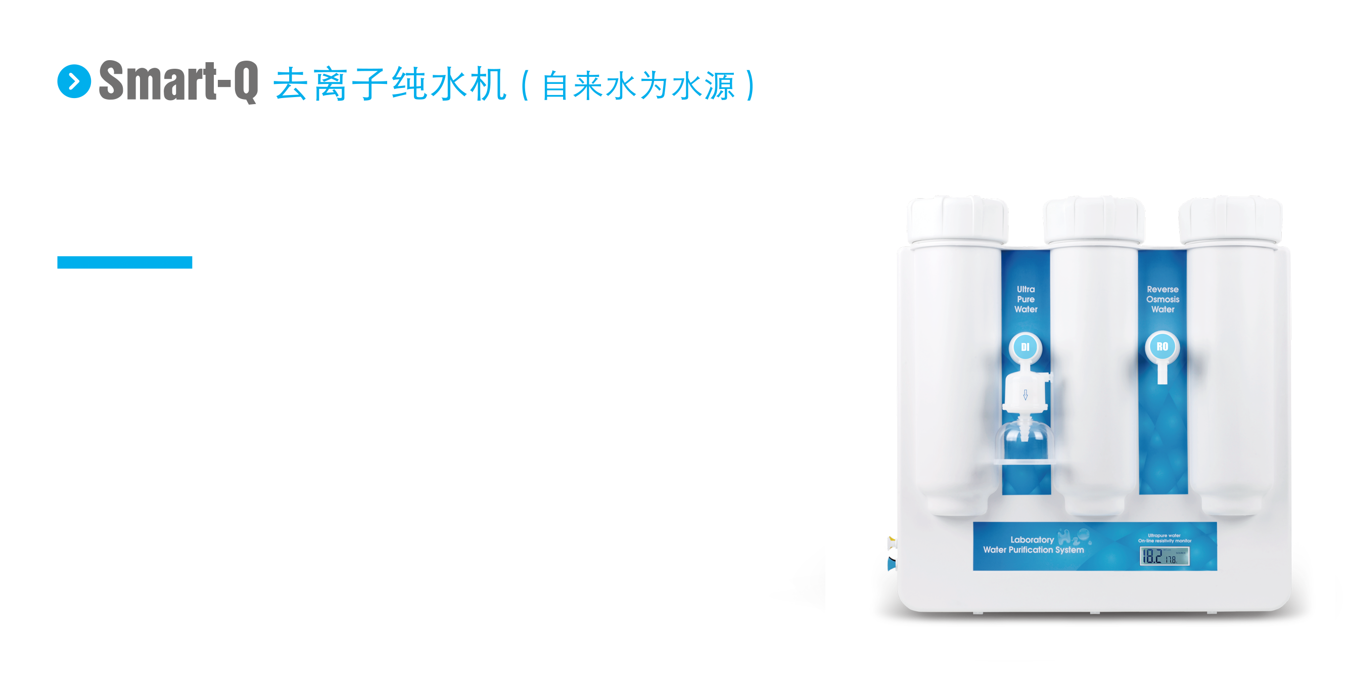日常實驗室分析用純水的經濟選擇,每小時產水量15-30升,電阻率15-18.2MΩ.cm,優于GB/T6682-2008一級水標準,滿足絕大多數化學和生物類實驗用水的要求。