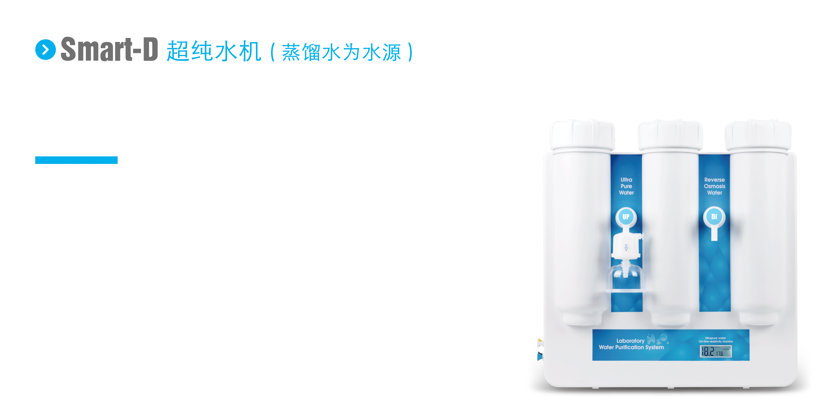 高級別實驗室用超純水的經濟選擇,以蒸餾水等純水為水源,每分鐘產水量多達2.0升,電阻率達到18.2MΩ.cm,相比自來水進水的機型,產水質量更加穩定可靠,完全符合GB/T6682-2008、GB/T33087-2016、ASTM、CAP、CLSI、EP和USP制定的Ⅰ級水質標準。