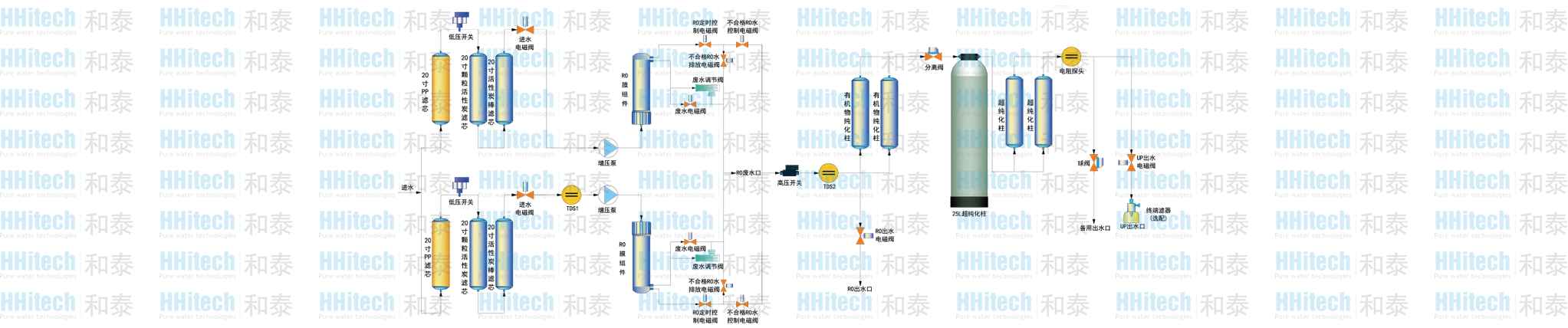 集成化程度高,占地面積小,僅為0.5m2。實現了在低成本下提供反滲透水、10MΩ.cm以上的去離子水,以及Ⅰ級達到18.2MΩ.cm的超純水,滿足實驗大樓中央供水及中等規模生產工藝用水的需求。