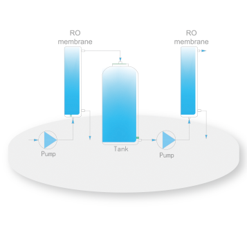 采用雙泵雙膜及過渡水箱,使系統能耗更低、廢水更少,確保在不同源水情況下的產水品質穩定.