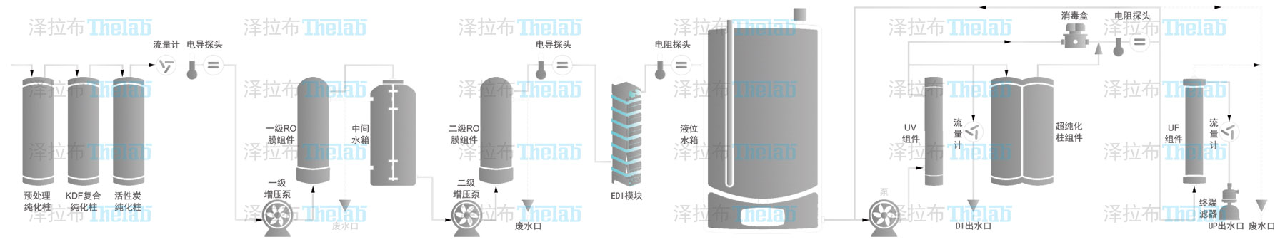 1 路源水流量統計,EDI 去離子水和UP 超純水2 路高精度定量取水功能.