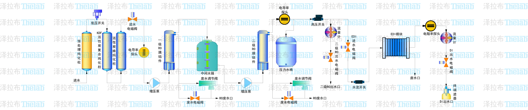 系統每小時產水量:45-90升,產水符合或超過ISO3696(2級水)、ASTM D1193(Ⅱ級電阻率和TOC表Ⅰ指標)、CLSI(前NCCLS)臨床試驗室、GB/T 6682及美國、歐盟和日本藥典中對純水的要求。